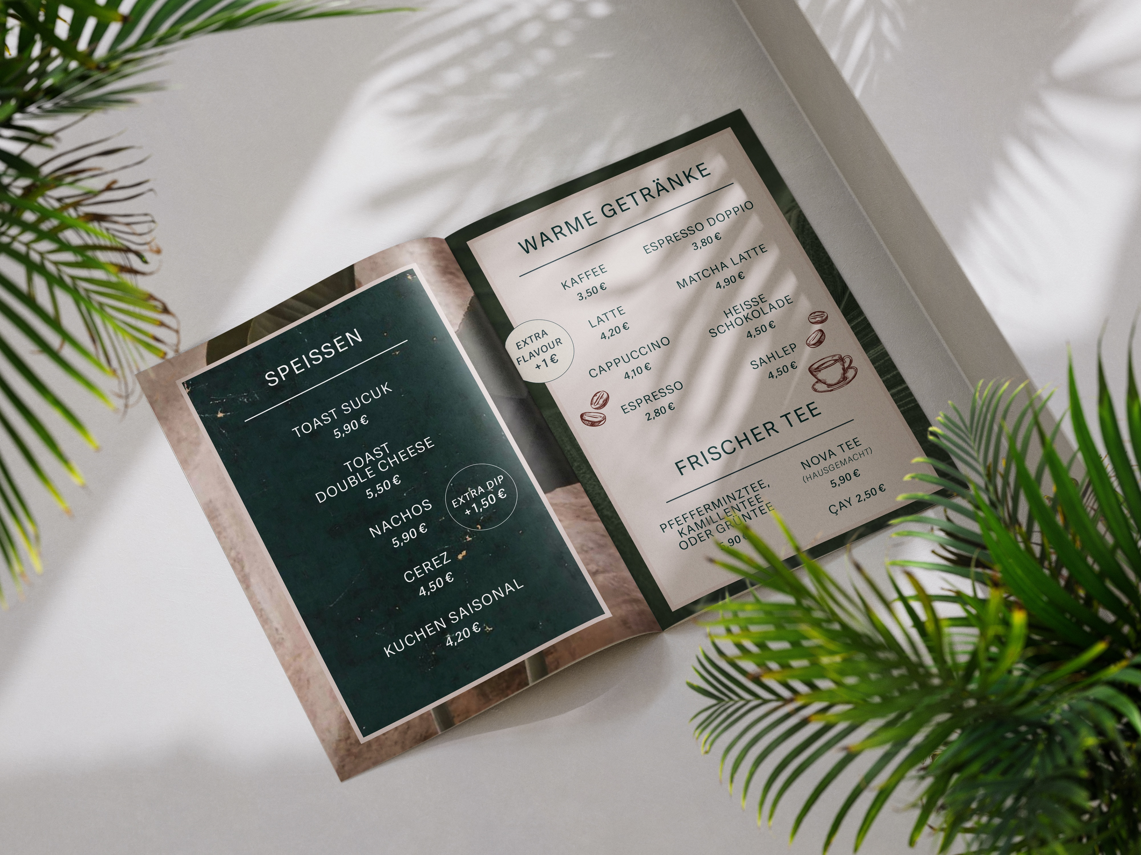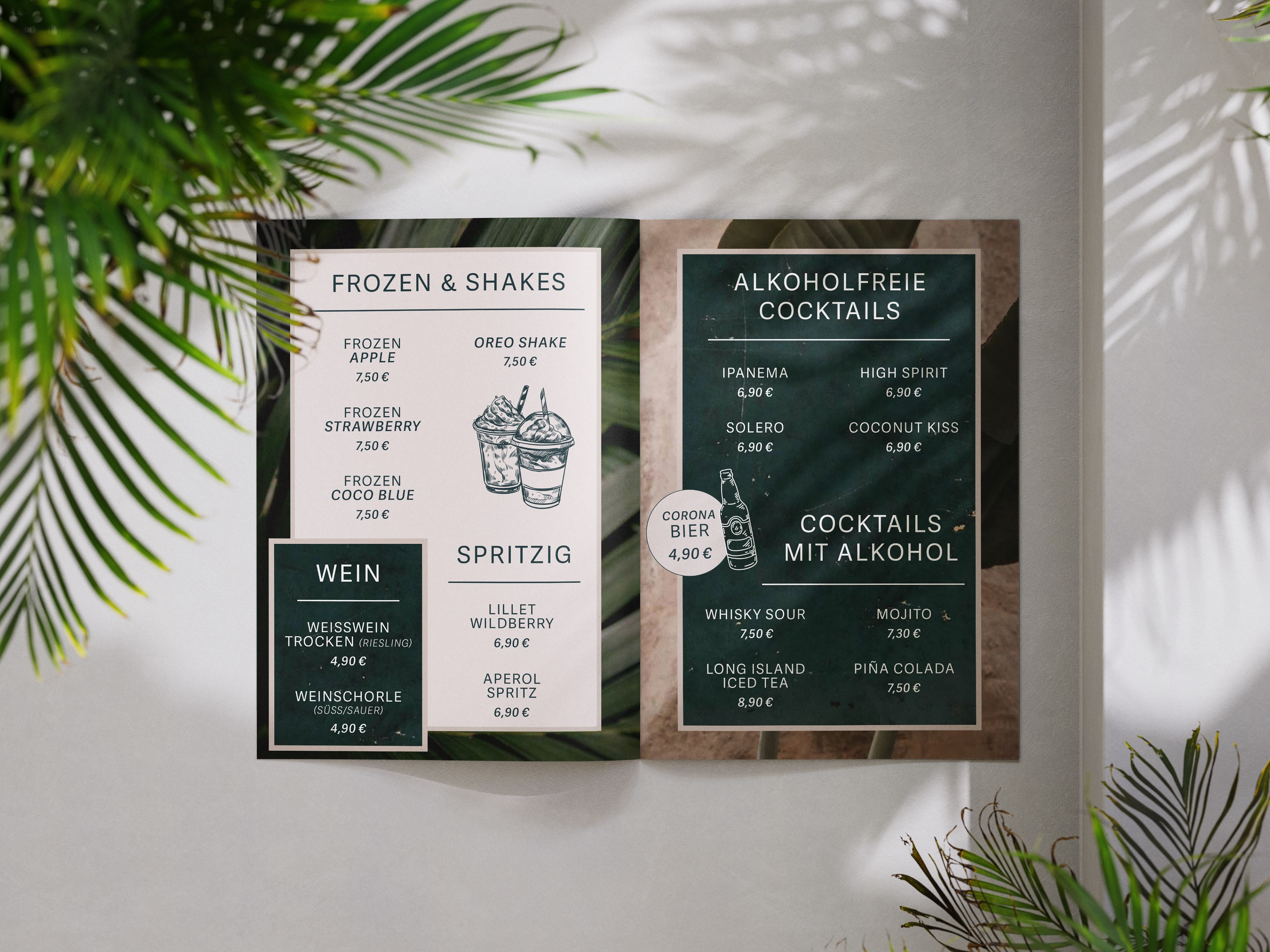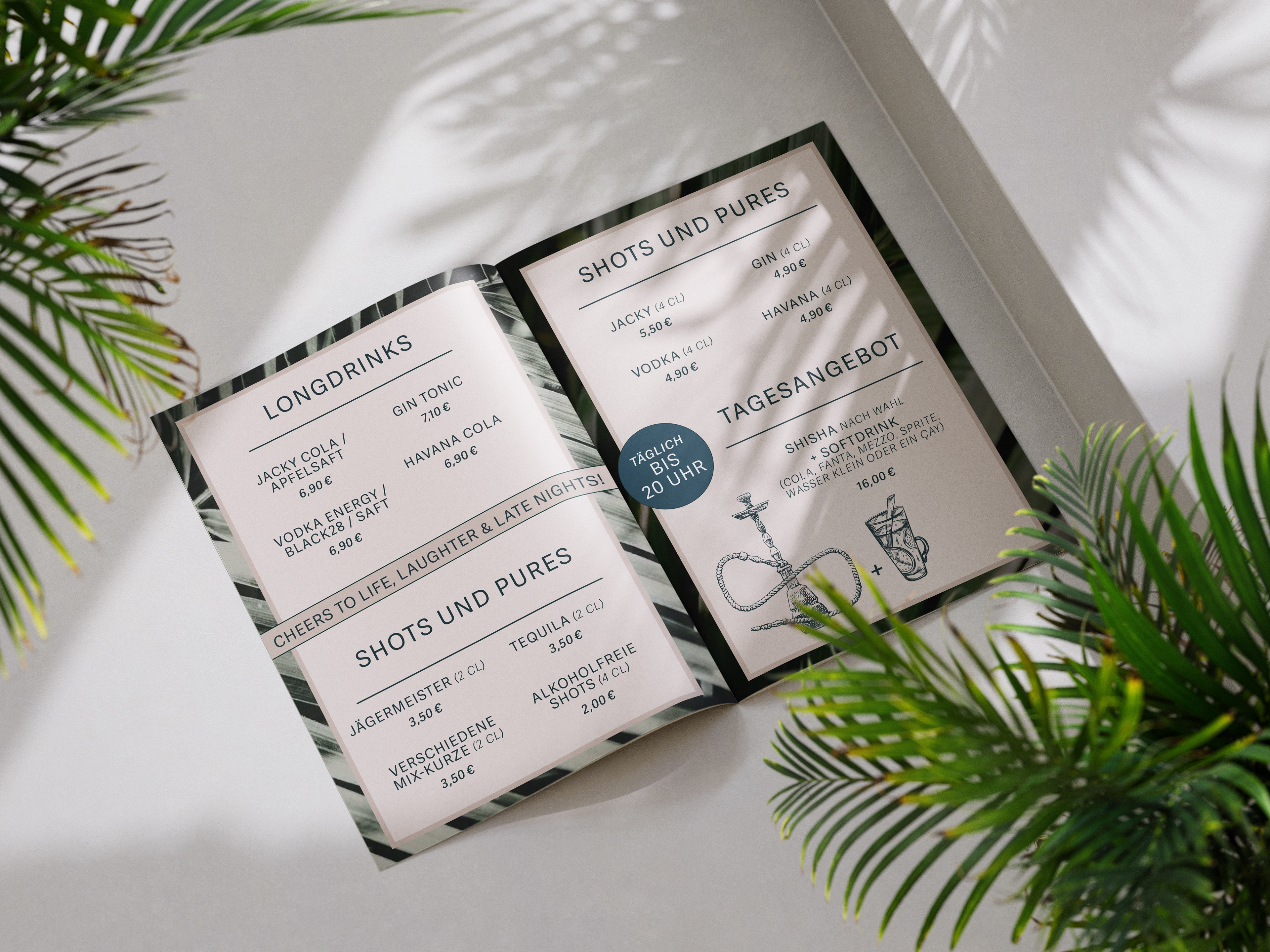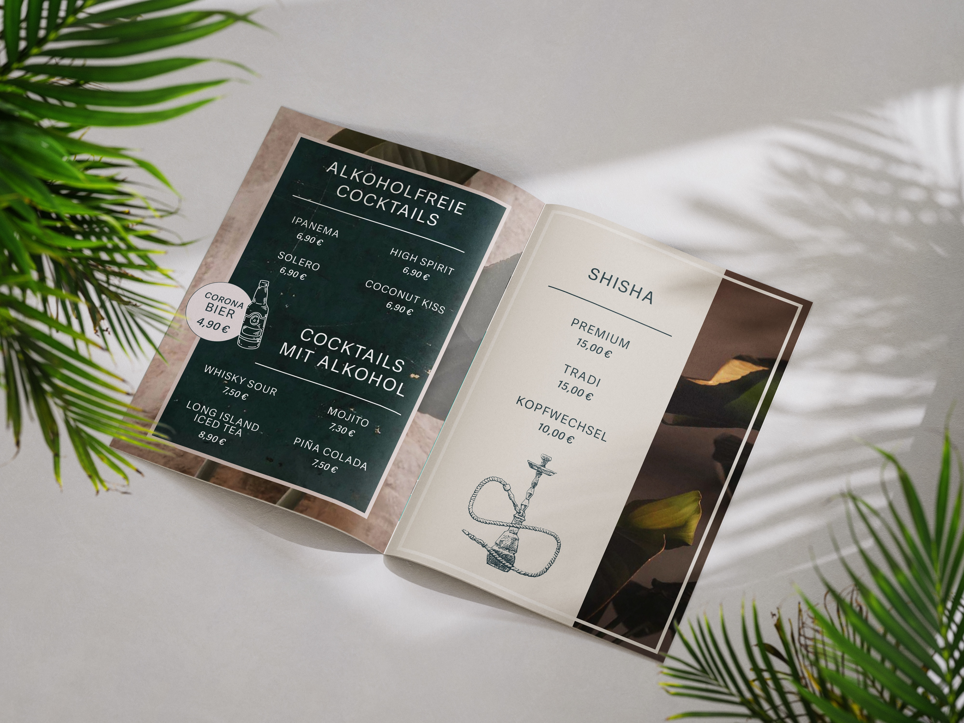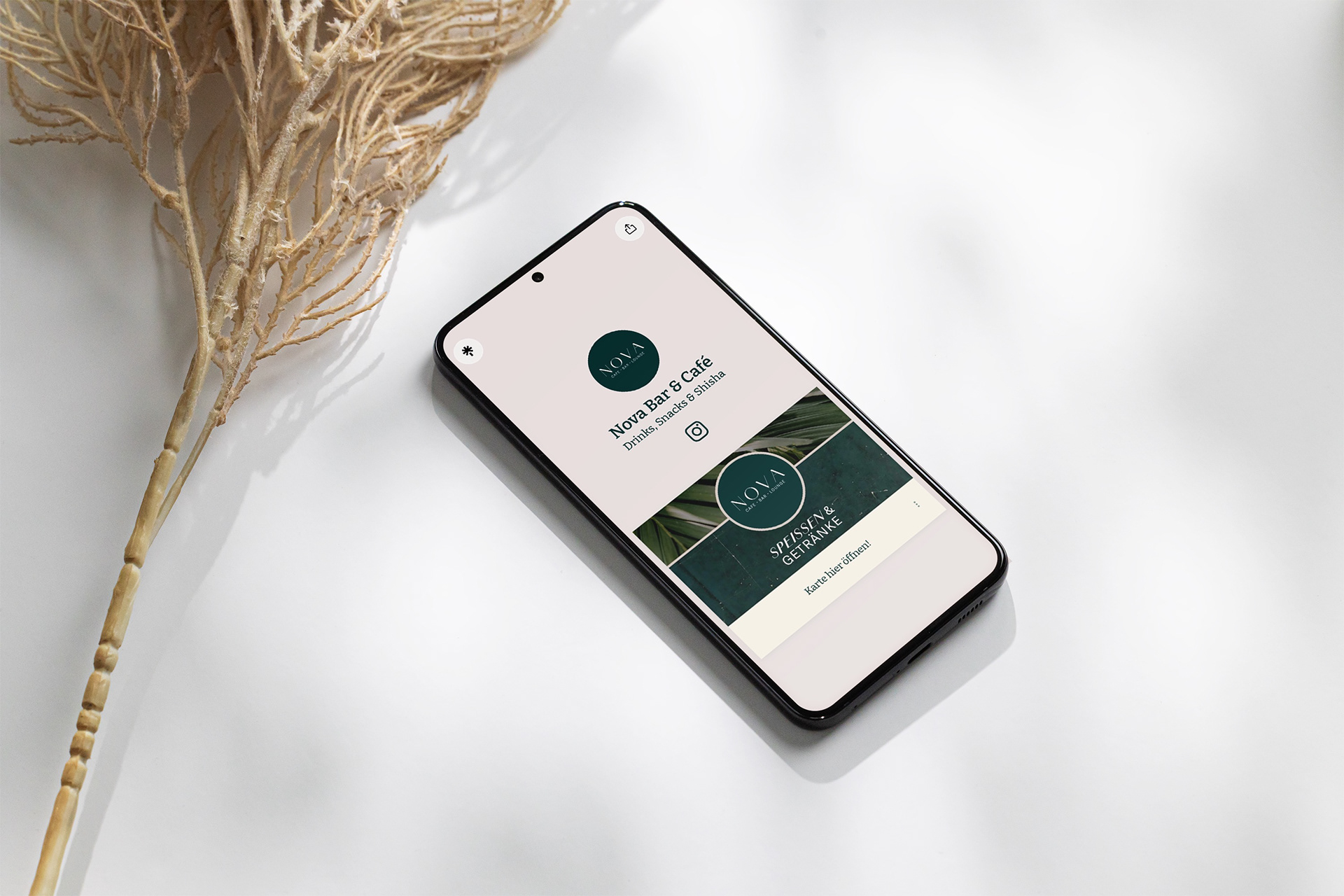 Für die Nova Bar in Frankenthal durfte ich die Gestaltung der Bar- und Speisekarte umsetzen. Der gestalterische Anspruch lag auf einem modernen Look, kombiniert mit Shisha-Bar-Charakter, südländischer Atmosphäre und einem Boho-Touch. Ergänzend erhalten die Gäste über ein hochwertiges QR-Code-Schild auf den Tischen Zugang zu einer digitalen Bedienoberfläche. Dort finden sich neben der Speisekarte auch aktuelle Events, Öffnungszeiten, sowie Verlinkungen zu Social Media und weiteren Informationen. So verbindet das Konzept analoges Design mit einer zeitgemäßen, digitalen Nutzerführung – passend zur Zielgruppe und zum Gesamtambiente der Bar.